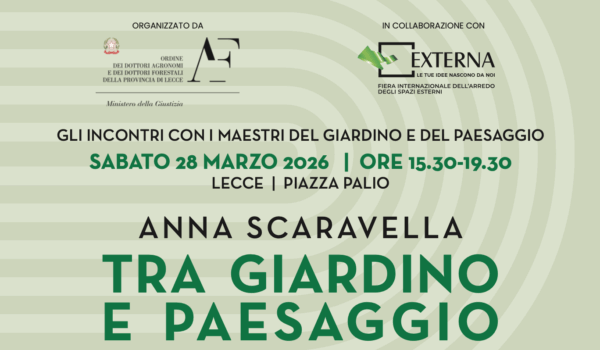 23 Mar 2026 Tra Giardino e Paesaggio: Incontro con Anna… L’Ordine dei Dottori Agronomi e dei Dottori Forestali della Provincia di Lecce è lieto di… Leggi di più